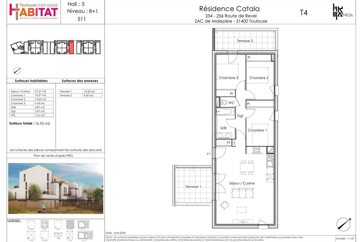 Située au cœur de Faubourg Malepère, quartier récent et attractif à 10min de l'accès au périphérique dans une résidence de 50 logements, nous vous proposons en location accession* cet appartement T4 de 77m² environ comprenant 2 terrasses de 10m² chacune.