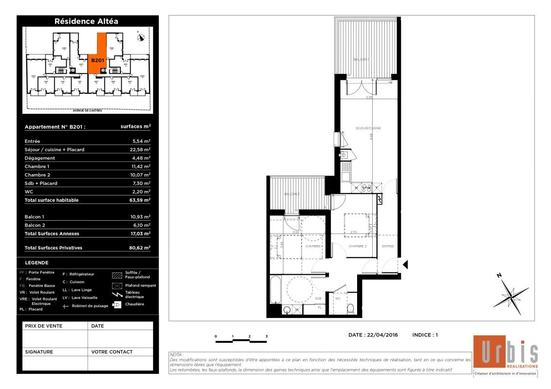 Appartement 3 pièces 63.59 m²