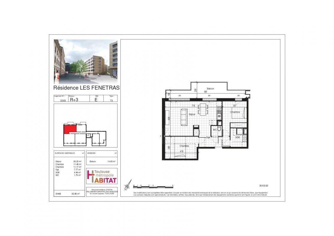 Appartement 3 pièces 62.86 m²