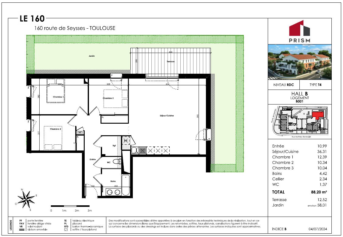 Type : T4 (3 chambres) — Surface habitable : 88,20 m².