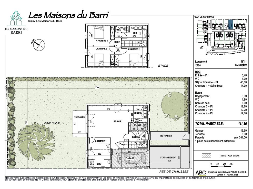 Découvrez cette charmante villa T5 en duplex, située au cœur de la résidence récente Les Maisons du Barri, cette villa mitoyenne de plain-pied de 111,30 m² vous offre un cadre de vie agréable, idéal pour une famille en quête d'espace, de confort et de tranquillité.