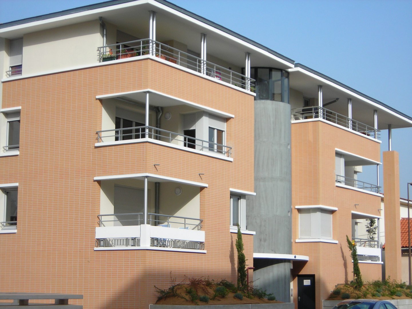 "Les Rives de la Garonne" se distingue par ses façades en briques rouges typiques de la région, rehaussées par les accents blancs de ses façades qui ont été repeintes en ce début d'année dans un objectif d'amélioration des performances énergétique.