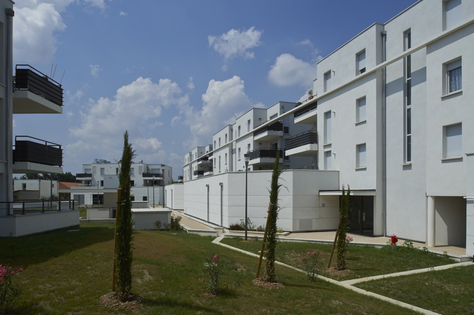 La résidence Tucaut, construite en 2012 au coeur de la ZAC de Tibaous, se situe dans un quartier périphérique récent, typique des communes de la première couronne de la banlieue toulousaine.